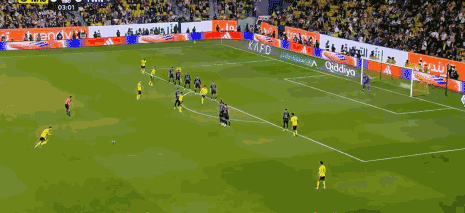 比赛一开场,利雅得胜利便迅速进入进攻节奏。第2分钟,西马坎后场送出精准长传,C罗禁区内迎球凌空抽射,皮球重重击中横梁弹出,总裁另类戴帽就此开启。
